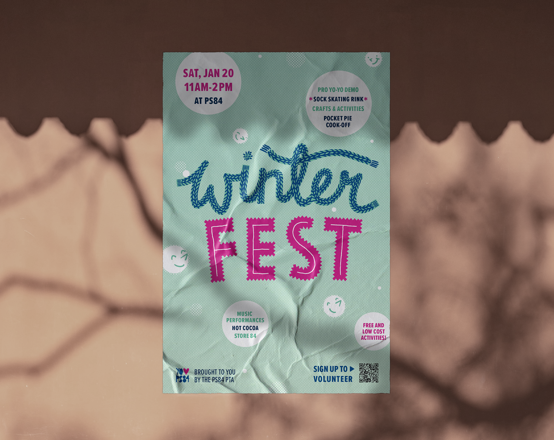 For the promotional materials of this event the organizers wanted a cozy and fun look that would attract the community to it.
